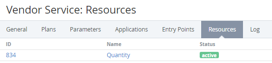 - Name — Resource name that is displayed during the Plan configuration. The ID and Name links allow viewing and editing the Resource details (see Viewing and editing information about a Resource).