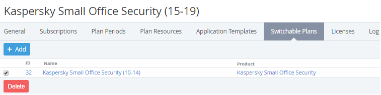 - Click Add to add a switchable plan for the current Plan.