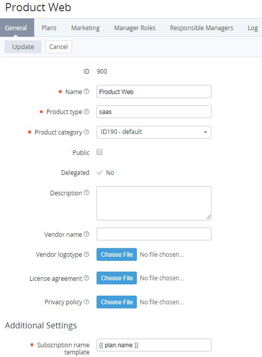 - Make the required changes in the Product information. Changing the Product information is similar to submitting the information when creating a new Product (see Creating a Product).