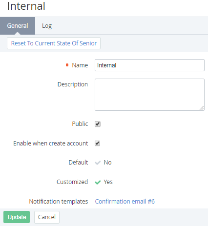 - Click the Reset To Current State of Senior button. The Notification Category is reset to the state of corresponding Notification Category of the upstream Reseller. The Customized attribute is set to No.