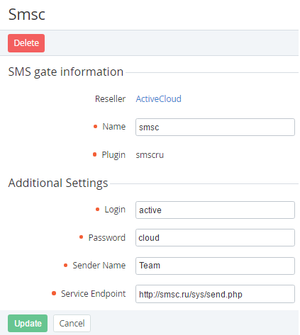 - Plugin - a name of the Plugin that is used for connecting to the SMS service;