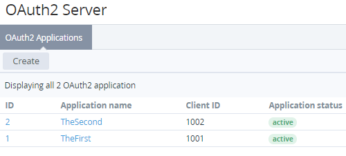 - Click Create. The new OAuth2 Application will be registered in the specified status.