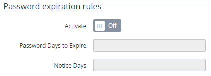 - To configure the expiration rules of the password, set the following options in the Password expiration rules group: