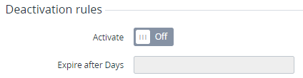 - To configure the deactivation rules for the user, set the following options in the Deactivation rules group: