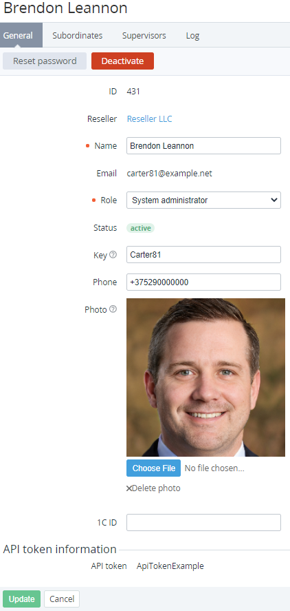 - API token — Manager's unique key used for authorization in the API service (see ActivePlatform. Reseller API Reference Guide).