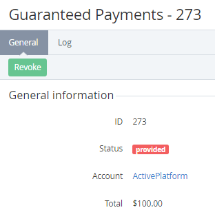 4. On the Toolbar of the guaranteed payment's page, click Revoke. The payment will be revoked.