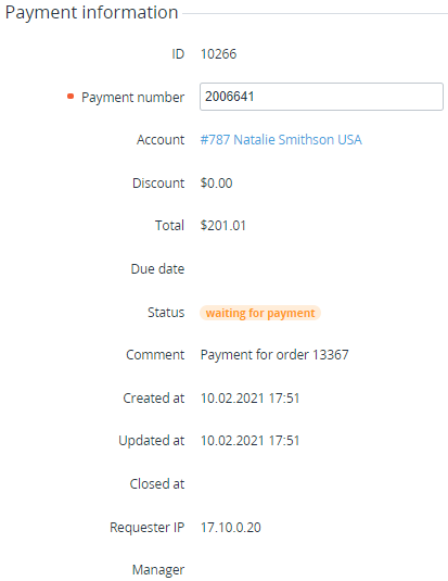 - Created at — date and time of the Payment creation.