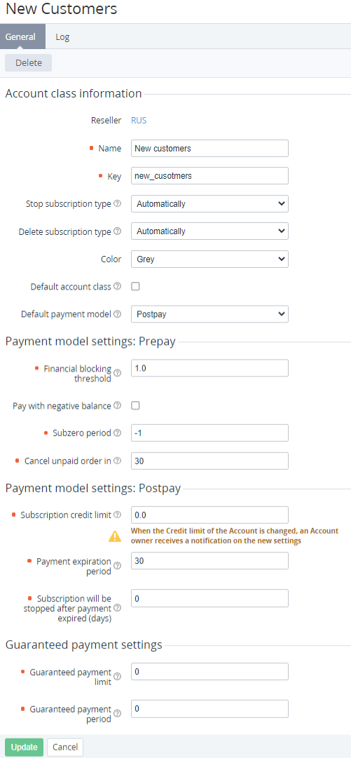 - Click the ID or name of the required Account Class. The page with the Account Class details is displayed.