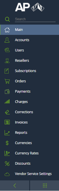 - The first letter of the Reseller name as the logo that is the link to the Main page (see Main page).