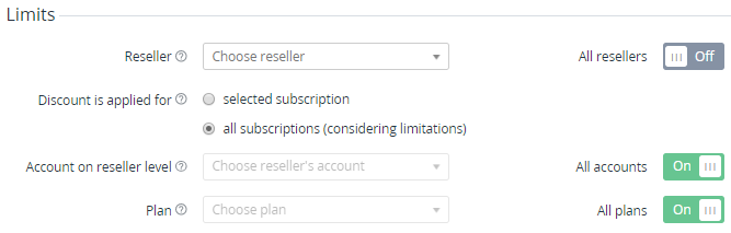 - To make this Discount available only to the selected Plan of the specified Reseller: