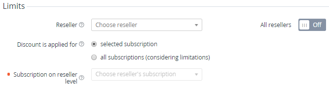 - To make this Discount available only to the selected Subscription of the specified Reseller: