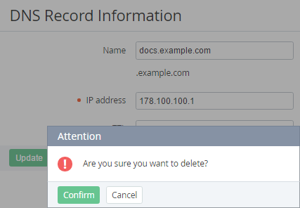 To delete a DNS record: