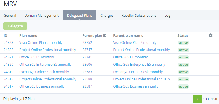 4. Click the Delegated Plans tab. The list of delegated Plans is displayed.