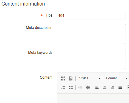 - Content — 404 page content. Default content description is given here — Structure of the standard 404 page.