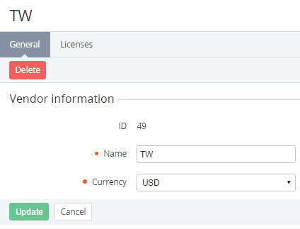 - Licenses — a vendor's licenses (see Managing Licenses)