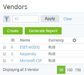 - On the Navigation Bar, go to Licenses Reports (see Navigation). The list of Vendors is displayed.