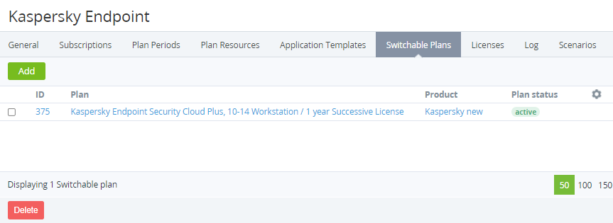 To delete a switchable Plan from the list: