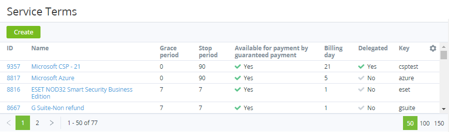 On the Navigation Bar,go to Service Terms (see Navigation). The list of Service Terms is displayed.