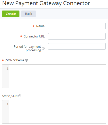 - On the Toolbar, click Create. The New Payment Gateway Connector page is displayed.