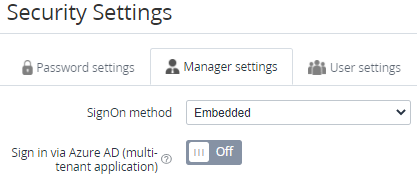 The Sign in via Azure AD (multi-tenant application) toggle is only available if all the Azure Active Directory settings are specified in the global setting of the installation (see Global Settings). See also Configuring access to the Operator Control Panel with Microsoft (Azure AD).