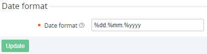 Date format — a mask used for formatting dates displayed in the Customer Control Panel. The mask can include:
