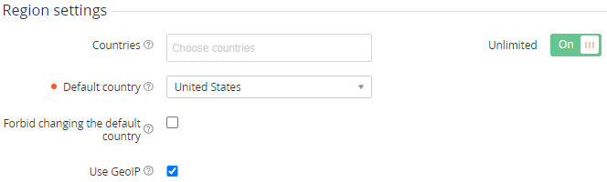 Forbid changing the default country — if the checkbox is selected, changing the default country is not available while creating and editing an Account. The GeoIP service is not available in this case too.
