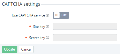 - Secret key — a private key used to transfer data between the Customer Control Panel and reCAPTCHA.