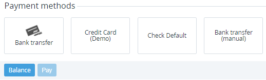 To complete the payment using funds from the account balance — if the account balance has sufficient funds: click Balance without selecting any payment method. The payment will be completed and get the Paid from balance status.