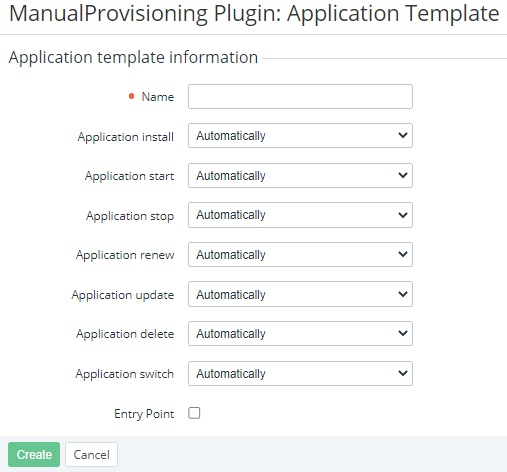 - Manually — to complete a service provisioning action, a created manual operation must be approved by a manager (see Manual operations).