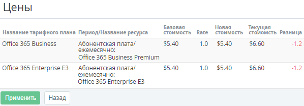 - Нажать кнопку Применить. Произойдет загрузка цен и обновление цен ресурсов Тарифных планов у Реселлера.