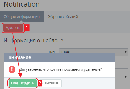 - Щелкнуть на ID или Названии необходимого Шаблона. Отобразится страница Шаблона уведомления.