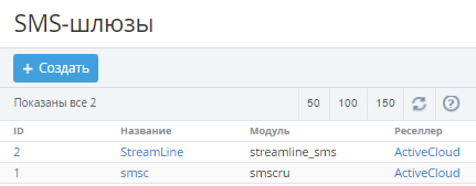 - На Панели навигации перейти в раздел Настройки > Уведомления > SMS-шлюзы. В рабочей области отобразится Список SMS-шлюзов.