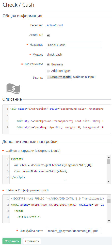 - Щелкнуть на ID или Названии необходимого способа оплаты. В рабочей области появится подробная информация о способе оплаты. Аналогичная информация представлена в разделе Создание Способа оплаты.