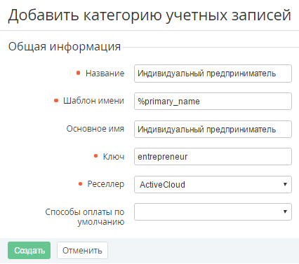 - На странице Добавить категорию учетных записей заполнить следующие поля: