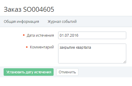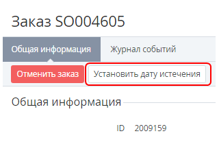 - Нажать кнопку Установить дату истечения. Дата истечения для заказа будет задана.