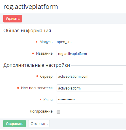 - Внести изменения в необходимые поля. Список доступных полей зависит от Доменного модуля, на базе которого создан Доменный регистратор (см. Создание Доменного регистратора).