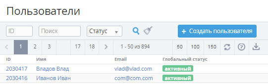 Список пользователей отображает всех Пользователей, созданных в Панели управления Оператора и Панели управления Клиента. Для просмотра Списка пользователей необходимо: