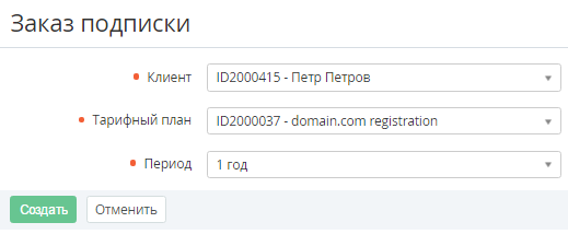 - В списке Период выбрать период Подписки (см. Периоды тарифного плана).