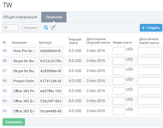 Хранение себестоимости Услуг по программе Microsoft CSP