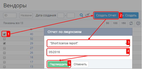 Для формирования Отчета по использованию лицензий вендоров, необходимо выполнить следующие действия: