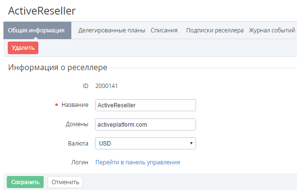 3. Щелкнуть на Названии необходимого реселлера. В рабочей области появится страница с подробной информацией о выбранном реселлере.