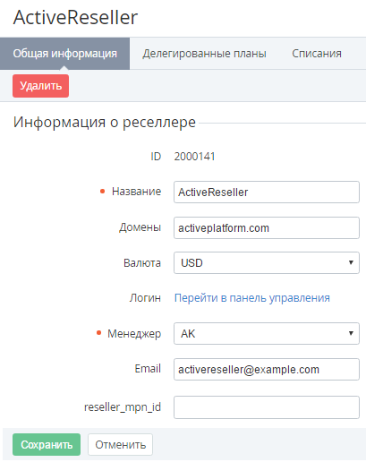 4. При необходимости на вкладке Общая информация изменить доступные для редактирования параметры реселлера.