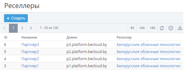 В Списке реселлеров отображаются все созданные Реселлеры. Для просмотра данного списка необходимо:
