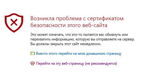 - В случае возникновения сообщения о проблеме с сертификатом безопасности веб-сайта необходимо проверить правильность загрузки SSL-сертификата Реселлера (см. Создание Реселлера).