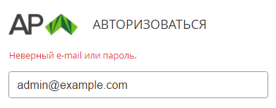 - Если на странице авторизации отобразилось сообщение о неверном email или пароле, необходимо проверить правильность создания Сотрудника (см. Создание Сотрудника Реселлера).