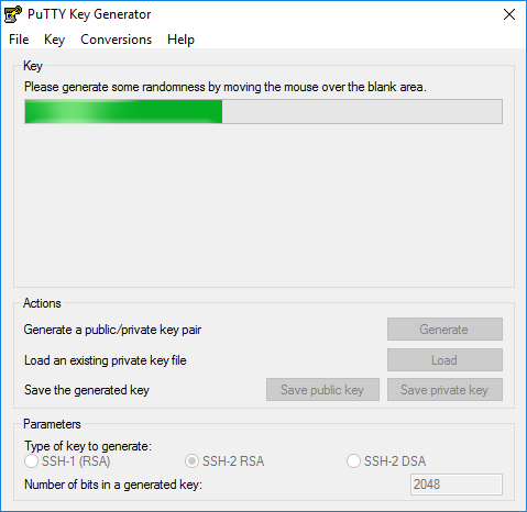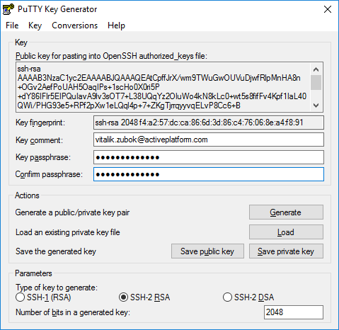 Для создания подключения к удаленному веб-серверу необходимо выполнить однократное создание Приватного и Публичного ключей для подключения к веб-серверу по протоколу SSH. Генерация ключей осуществляется с помощью программы PuTTYgen.