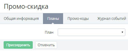 - В выпадающем списке План выбрать тарифный план, для которого может быть использована выбранная скидка. На вкладке Планы отобразятся доступные периоды и ресурсы выбранного тарифного плана.