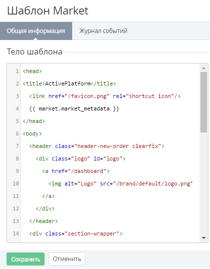 - На вкладке Общая информация изменить HTML-код в поле Тело шаблона.