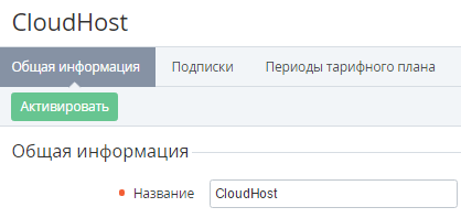 - На Панели инструментов вкладки Общая информация нажать кнопку Активировать. Статус тарифного плана изменится на Активный. Тарифный план будет доступен для заказа клиентами. Если Тарифный план был делегирован нижестоящему Реселлеру, то в Панели управления Реселлера данного Реселлера план приобретет статус Активный.