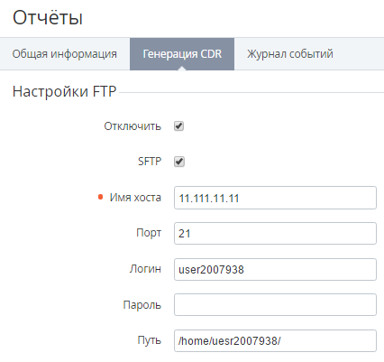 Путь - путь на FTP-сервере для указания места хранения CDR-файлов на сервере.